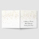 This guest book is shown in white with a curtain of golden coloured petite stars on both front and back are splattered all over this guest book. Front has text reading your two personalised names in a fancy script, your last name in bold text style.