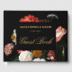 Custom Wedding Guest Book Dark Black Red Floral. Copper coloured text is fully customisable. Floral background on front and back. Moody, elegant and modern.