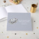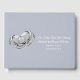 This wedding guest book Has the phrase " For all time and eternity" on the front of it along with a man and women's wedding rings joined together in the middle on one side of this guest book's front cover. Shown in Dusty Blue colour with sample names for you to personalise in White along with your wedding date. Back has same wedding ring graphic along with text in fancy script of " A promise is forever". Names are printed on the spine with wedding date also, so remember to customise this to your names also.
