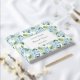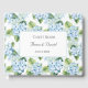 This guest book is shown in a romantic blue hydrangea print.