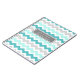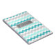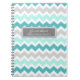 Spiral wedding guest book notebook in elegant turquoise aqua blue, charcoal grey and white retro and casual chevrons zigzags stripes pattern. Customisable with your names and wedding date.