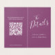 Wedding reception and after party handy schedule and map enclosure card with QR code is part of the matching simple typographic heart purple plum and white wedding set. Ideal to use as a wedding information card or for a directions card to keep you guest informed where to go on the day and the after party, also can be used as an accommodation card. All text is editable simply replace with your own venues and times then replace the sample map with your own and move the around the letter marker dots to your venue locations. Add your own QR code to the reverse to help get further information or changing information out to your guest and to give them the option of replying online. If you require any help with personalising or changing this design to suit your needs, please get in touch. Other matching items and colour options available. Design by Sarah Trett for www.mylittleedenweddings.com on Zazzle.