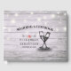 Wedding Guestbook Templates - Elegant Lettering Script, Vintage Champagne Glasses and String Lights on Rustic Wood Background.