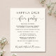 Budget-friendly elopement or smaller wedding light cream announcement to announce your elopement or small wedding, and to invite them to a wedding reception or celebration party. The front features "Happily Ever After Party" in a mix of simple typography and an elegant script with swashes, and you can personalise your message and invitation in more detail and your names in a signature-like script. The reverse side features your first names and wedding date. This budget semi-gloss paper is similar in weight to photo paper. A traditional thick card stock version is also available (message us for the link).