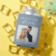 Perfect dusty blue can cooler keepsake favors for your post-elopement or wedding reception guests with your photo and "Happily Ever After Party" in a mix of simple white typography and a trendy white script, and your first names and wedding date.