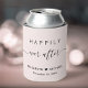 Pink wedding can cooler party favours with "Happily Ever After" in a mix of simple typography and a stylish script with swashes, your first names and the date joined by a heart. Perfect for your wedding reception, engagement parties and couples shower.