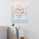 Wedding Welcome Sign | Real Foil Accents - Stunning shimmering sparkly Ocean waters glistening in the setting sun - in pale shades of dusty rose pink and dusty blue - text appears on a sheer white sparkling gold edged frame that shows the design but allows the text to easily be read. Accented with beautiful elegant handwritten calligraphy. Easy to personalise wedding template