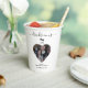 A beautiful way to thank your guests on attending your wedding with this custom heart photo family pet "drinks on us" paper cup. Remember that special moment forever with this wedding couple and pet dog photo paper cup. Personalise the script typography to your own text and wedding date.
