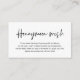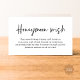 Celebrate the beginning of your journey together with our elegantly crafted "honeymoon wish" black white wedding invitation enclosed card. Featuring a sophisticated blend of modern script and romantic allure, each card is meticulously designed to convey the essence of your special day. Perfectly suited for couples seeking a unique way to share their honeymoon dreams, this card invites your loved ones to contribute cash towards unforgettable experiences. Whether nestled in a luxurious envelope or presented alongside your wedding invitations, our card adds a touch of enchantment to your celebration, promising cherished memories that last a lifetime. Designed by TeeshaDerrick.