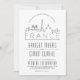 A unique wedding invitation for a marriage taking place in the beautiful country of France. This invitation features a stylised illustration of the city's unique skyline with its name underneath. This is followed by your wedding day information in a matching open-lined style. On the reverse side of the invitation is a deep grey colour to complement the look and feel. All individual elements of the invite card are unlocked so feel free to change or add any details necessary by using the customisation function. You can add a photo to the reverse side and add a black and white filter to it. Matching RSVP, belly bands, tote bags, and more are available. Have fun being creative and making it your own!