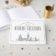 Make an impression with a one-of-a-kind wedding guestbook. This London-themed wedding guest book features a unique modern deco skyline of the city towards the bottom and the names of the wedding couple, the city name, and the marriage date above it.