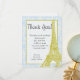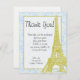 Wedding in Paris Blue Damask Flat Thank You Card