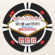 WELCOME TO THE BRIDE AND GROOM'S FABULOUS WEDDING! Whether you're tying the knot in Las Vegas or your own home town, these lucky casino style wedding reception favours are sure to hit with your guests. Replica of the famous Nevada sign in retro neon doo-wop style, just add your names as the star headliners on the strip. Put your wedding date in the slot machine template to let everyone know you've hit the jackpot. These fun and unique novelty favours are perfect for weddings, bridal and couple's showers, bachelor and bachelorette parties, stag parties, save the date announcements, rehearsal dinners, drink tickets, or wedding party keepsakes. Personalise the names on the back or add your own message. Makes a great addition to your wedding accessories packet. Click the Customise button to change the background colour or font size and style.