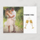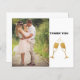 Express your gratitude in style with this elegant thank-you card, perfect for weddings or special occasions. Featuring a romantic photo of a bride and groom alongside a sparkling champagne toast design, this card captures the joy of your celebration. Fully customisable with your names and message, it’s a beautiful way to thank your guests for sharing in your special day."