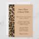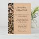 This romantic classic wedding invitation is shown in a tan safari leopard print in a formal layout with text in a lovely script print and with script text highlighting the names of the Bride and Groom.