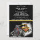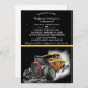 Hot Rod party fire wedding invitation has a orange flame burning out and around a old car. At bottom to the middle and a black background with a place to put all your invite text.