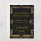 Wedding invitation black & gold, great-Gatsby, two-sided, monogram-back, old-font