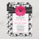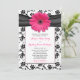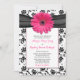Black and white floral damask with hot pink daisy and ribbon wedding invitation. NOTE: the ribbon and flower are simulated printed on design items.