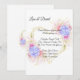This wedding invitation is shown in a classic layout on a white background colour with a lovely blue hydrangeas and pink roses art print.