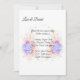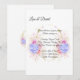 This wedding invitation is shown in a classic layout on a white background colour with a lovely blue hydrangeas and pink roses art print.