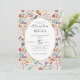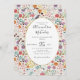 Hand designed trending floral pattern of colourful flowers in a whimsical Summer garden. Modern and elegant wedding invitation.