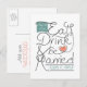 Wedding invitation design to save the date for a special occasion. Fun letters with additional design elements saying: Eat drink and be married. Heart shape is included to emphasize romance.