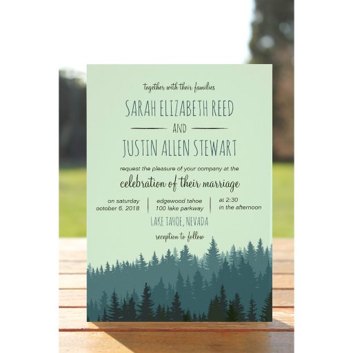 Rustic wedding envelope which fits the 5x7 invitation card is decorated with mountains in blue and green. Add your address to the back flap of the envelope. This matches a collection in my store.