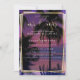 Wedding Invitation | Exotic Tropical Night Wedding by the BarefootBride™ - Tropical Island Beach at Deep Sunset - a perfect Night Beach Wedding set - exotic palm trees with the ocean waves crashing on the shore of a pristine beach just before dark when the sky is all lit up in magenta, purple and bright pinks. This collection features an offset terrarium style gold geometric shape with a centre smokey sheer window and edges of varying transparencies in the facets to allow the Exotic Island Palms and Sunset background to show through in a variety of shapes and intensities. A combination of gold script calligraphy combined with a minimalist, contemporary style text layout makes it a trending style wedding suite. This is part of a wedding stationery collection with matching wedding accessories.