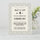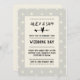 This modern wedding invitation design features informal typography with an arrow and heart motif on a greige spot background. see entire collection for matching items.