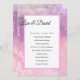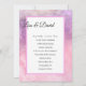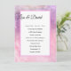 This wedding invitation is shown in a pink watercolor background and of matte paper choice. Created with a formal written layout and text in standard print with script highlighting the names of the Bride and Groom over a white text area with pink border. Back has same watercolor background. Customise this wedding invitation by clicking on the customise button, look to the right to find the text boxes, change the text in the appropriate boxes to add your information. Choose your options of paper and colour in filter including shimmers.
