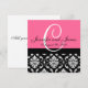 Wedding Invitation Monogram Names Date Pink Damask