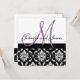 Wedding Invitation Monogram Names Plum Damask