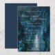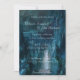Romantic rustic country mountain waterfall in blue wedding invitation.