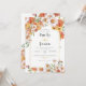 This wedding invitation features a stunning floral design with a mix of soft, warm-toned flowers that beautifully frame the edges. The elegant arrangement of blooms gives the invitation a timeless, romantic feel. The names of the couple are prominently displayed in a bold, stylish font, with a delicate gold accent between them, adding a touch of sophistication.