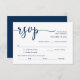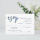 This is the beautiful Modern Romantic RSVP (Respond) Enclosure Card, in Navy Blue font, where you can edit, change colour and format it as per your design requirement, with meal options, reserved seats, number attending and song request option.