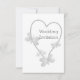 Wedding invitation silver coloured heart and butterflies design. Customise this silver coloured invitation with your wedding details then have it printed and sent to you or instantly download it. Should you require any help with customising then contact us through the link on this page. Silver coloured butterfly and heart design personalised wedding invitation that you can have printed or instantly download