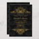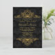 This vintage elegant design wedding invitation features a midnight black background with black on black filigree and the gold coloured text is between a golden filigree design. Easily customised. ::ENVELOPES INCLUDED::