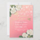 Wedding Celebration Invitation Cards Template - Elegant White lovely Watercolor Hydrangea Flowers and String Lights on Pink Gradient Background.