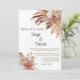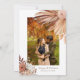 Share your love story with your guests with this boho feather and floral wedding invitation with a photo. This invitation has a warm and cosy feel with a brown background and a stunning floral and feather arrangement. You can upload your favourite photo and customise the text to say what you want. This invitation is great for a boho, rustic, or country wedding theme.