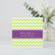 Wedding invitation cards in elegant and contemporary chartreuse lime green, eggplant dark purple, and white modern chevron zigzags pattern. Customise these invitations with your wedding details. Available in matching products for all of your wedding needs.