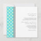 Wedding invitation cards in elegant and contemporary charcoal grey, turquoise aqua blue, light pastel mint green, and white retro circles and diamonds geometric pattern. Customise these invitations with your wedding details. Available in matching products for all of your wedding needs.