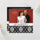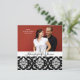 Elegant Monogram and Engagement Photo Damask Wedding Invitations. Design and layout by Elke Clarke ©2010. Back view. Customise with your own photograph, names, monogram and wedding invitation text. For more editing options select "CUSTOMIZE" to change the spacing, background and font colour, and font style. Damask and photo are licensed for use.com and WhiteWhimsicalWeddings.blogspot.com. Add all your wedding information on the back of the card. For a second option see the invitation design below with more detail on the back.