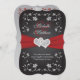 This romantic and dramatic black and silver floral bracket shaped wedding invitation has a PRINTED on red RIBBON, a pair of PRINTED diamond and glitter joined jewel hearts and metallic look silver and red flowers on it. The customisable verse on the front says, "Two lives, two hearts, Joined together in friendship, United forever in love". ****PLEASE NOTE that everything will print as it appears on your monitor, so if you have typos, alignment, or sizing issues, please contact me for help BEFORE you order. I can't do anything once the order is placed with Zazzle. If you need any other matching items, please email niteowlstudio@gmail.com.