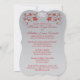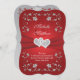 This romantic red and silver floral bracket shaped wedding invitation has a PRINTED RIBBON, a pair of PRINTED diamond and glitter joined jewel hearts and metallic look silver and red flowers on it. ****PLEASE NOTE that everything will print as it appears on your monitor, so if you have typos, alignment, or sizing issues, please contact me for help BEFORE you order. I can't do anything once the order is placed with Zazzle. If you need any other matching items, please email niteowlstudio@gmail.com.