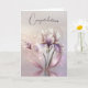 Mauve and white iris flowers with intricate details are outlined in gold and adorned with dew drops for wedding congratulations.