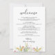 Wedding welcome letter. Floral calligraphy modern itinerary with wildflowers.