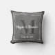Personalised grey and white burlap custom monogram wedding keepsake pillow. A perfect wedding gift for the bride and groom featuring the bride and groom's names, initial and wedding date. Customise the initial, newlywed's names and date of their wedding ceremony.
