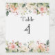 Wedding label with table number.Pink watercolor roses, flowers and greenery.