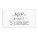 Create your own Monogrammed Large Wedding Invitations Return Address labels with this Stylish Elegant Chic Script Return Address template. The Return Address simple label in black and white typo features couple names and monogram with initials in handwritten calligraphy modern font, and huge space for your own return address in classic and sophisticated serif font. This clean and minimalist return address label design is perfect for rspv, wedding invitations, bridal shower, save the date and all your special occasions. You can use the template also for make your own diy thank you labels for wedding favours and guest gifts.