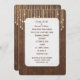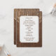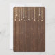 Hanging glowing gold light string on rustic brown barn wood for wedding invite.